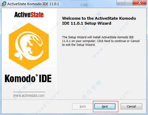 1、在本站下载好Komodo IDE破解版安装包,双击运行“Komodo-IDE-11.0.1-90797.exe”程序,弹出软件安装向导,点击“Next”开始安装;