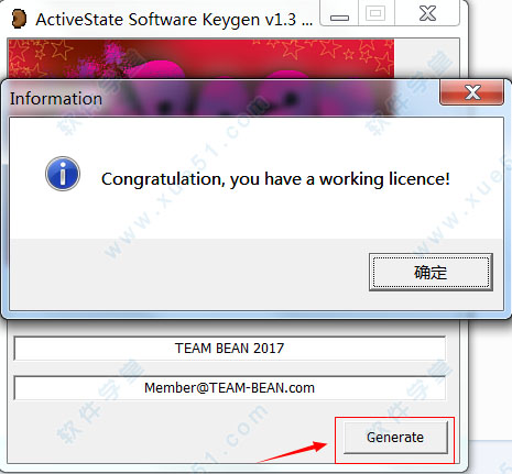 2、找到之前下载的安装包目录,打开“keygen”注册机文件夹,双击运行“kg.pyc”注册机,双击“Keygen.exe”运行程序,并点击注册机界面中的“Generate”生成证书文件。