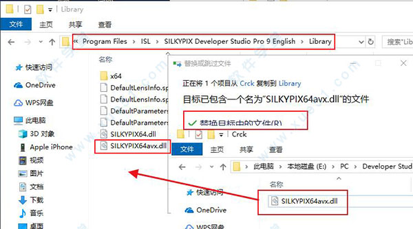 6、安装完成后将破解补丁“SILKYPIX64avx.dll”附复制到C:Program FilesISLSILKYPIX Developer Studio Pro 9 EnglishLibrary目录下替换原文件即可