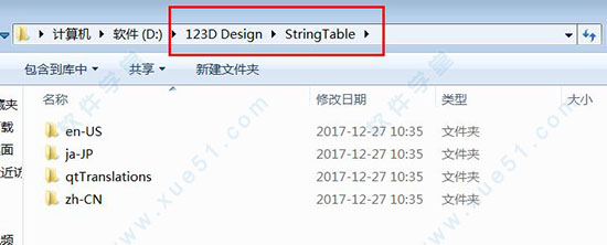 4、打开程序安装原目录,在“StringTable”中可以看到4个文件夹,如下图:
