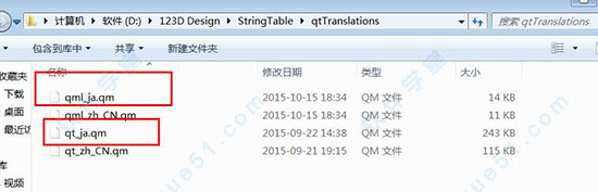 6、再打开qtTranslations文件夹,删除qml_ja.qm和qt_ja.qm两个文件;