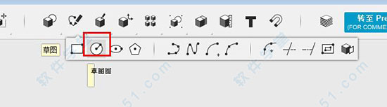 1、启动软件后在草绘指令集中左键点击绘制圆的指令;