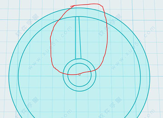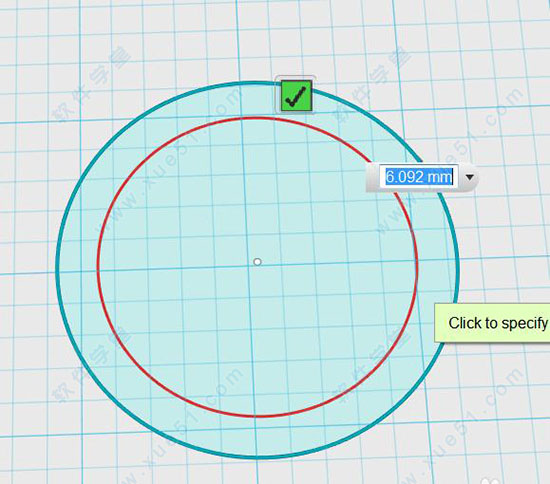 2、同样在草绘指令集中左键单击偏移指令,然后再左键点击圆,此时移动鼠标会出现一个红色圆圈,然后再向内偏移4mm;