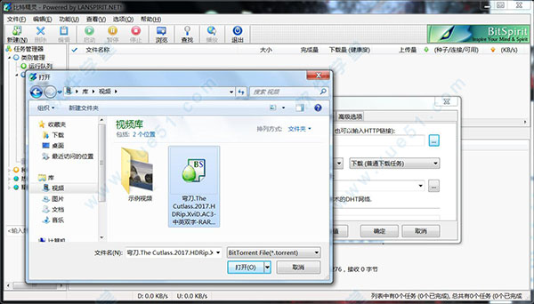 2、或者点击按钮,浏览本地文件,手动添加.torrent文件。