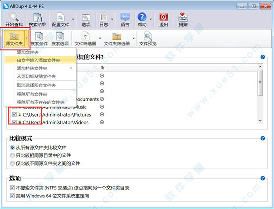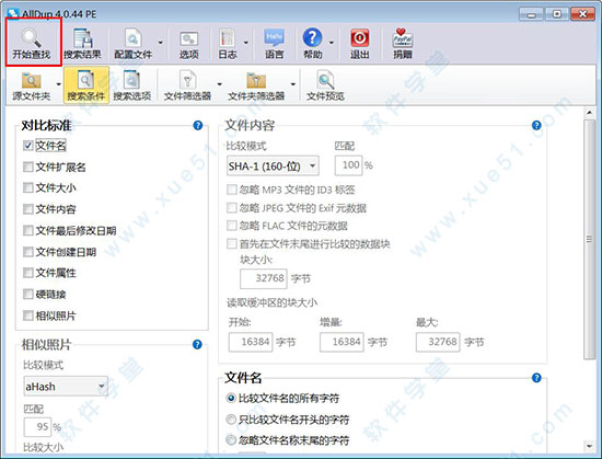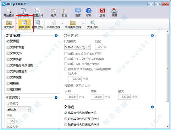 1、能通过比较模式以及选项来设定搜索的文件范围;