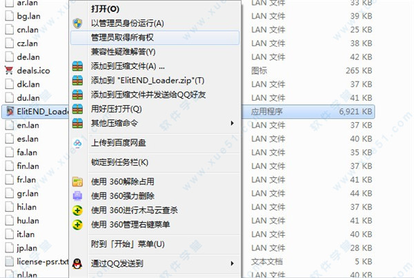 3、然后以管理员身份运行安装路径下的“ElitEND_Loader.exe”程序。