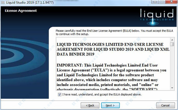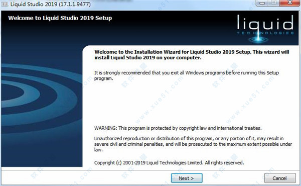 2、双击运行“LiquidStudio2019.exe”主程序,在安装向导界面中点击“Next”。