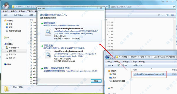 2、将Crack文件夹下的“LiquidTechnologies.Common.dll”破解补丁复制到上一步中打开的软件位置,在出现的提示中选择复制和替换这一项。