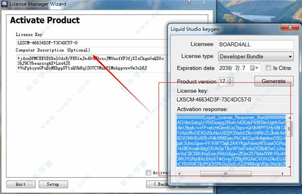 3、接着运行“liquidstudio_kg.exe”注册机,点击【Generate】生成激活码与序列号。