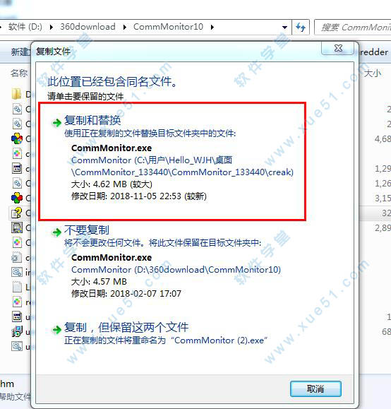 3、关闭软件,接下来对软件进行破解,回到软件安装包,打开creak文件夹,将文件夹内CommMonitor.exe破解文件复制到软件安装路径下替换原文件,选择复制和替换即可