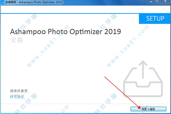 2、然后双击运行ashampoo_photo_optimizer_2019.exe程序进行软件安装,弹出界面,进入安装向导界面,点击同意&继续进入下一步