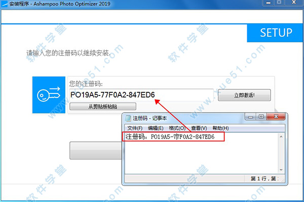 3、需要填写注册码,回到软件安装包,打开注册码文件,将文件内注册码复制到软件安装界面需要填写注册码方框内即可