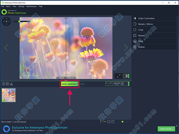Ashampoo Photo Optimizer 2019是一款在原软件功能和性能上通过改进和优化的目前最新版本图片优化软件,新增支持多种接口语言,并且在测试期间不会冻结、崩溃或弹出错误。主要关注调整图像的亮度和对比度,但不限于此(例如,它还可以添加帧)。软件可以进行颜色修正、旋转/镜像、切割、调整大小、打印、删除等操作,支持批量处理,您可以使用文件