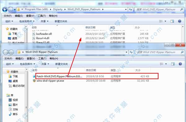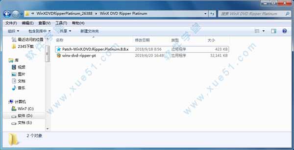 1、然后进入软件安装路径,接着回到软件安装包,将Patch-WinX.DVD.Ripper.Platinum.8.8.x.exe注册机破解文件复制到软件安装路径下