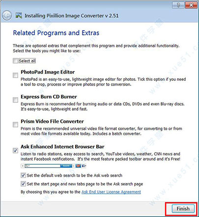 浏览器工具栏的组件,可以取消。单击【Finish】就安装完成了。