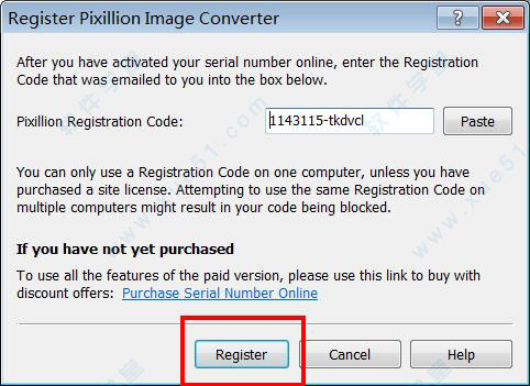 5、然后把注册码粘贴至注册码框中,单击Register注册;