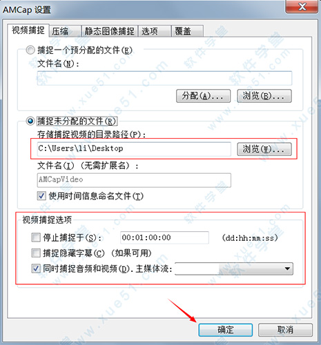 2、在设置框中我们可以看到存储捕捉视频的路径以及自定义视频捕捉选项。