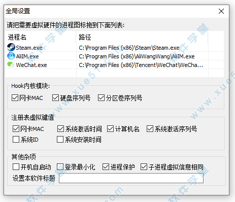 3、打开掘金硬件修改大师,把需要修改的硬件进程拉倒全局设置中
