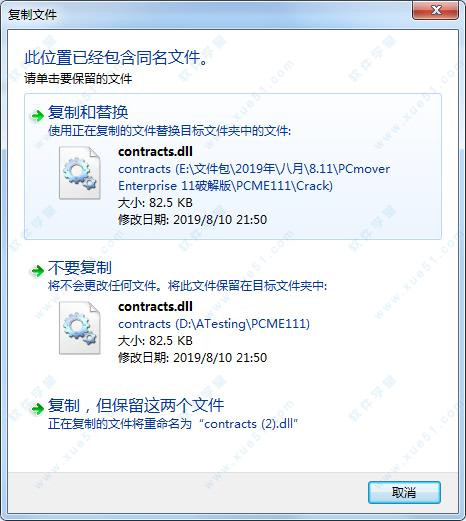 3、完成安装后将Crack文件夹下的破解补丁复制到你选择的软件安装路径中,contracts.dll补丁选择替换原文件这一项。