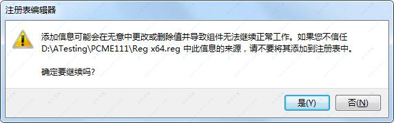 4、根据操作系统是使用“Reg x64.reg”还是“Reg x86.reg”运行进行激活,点击【是】打入补丁即可。