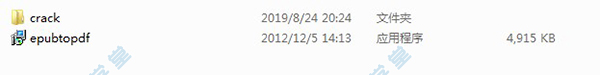 1、下载并解压epub转pdf软件(epub to pdf converter)破解版安装包压缩包,得到安装程序和破解补丁文件