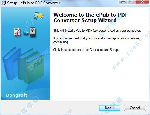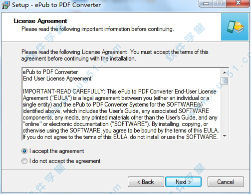 2、然后双击运行epubtopdf.exe程序进行软件安装,弹出界面进入安装向导界面
