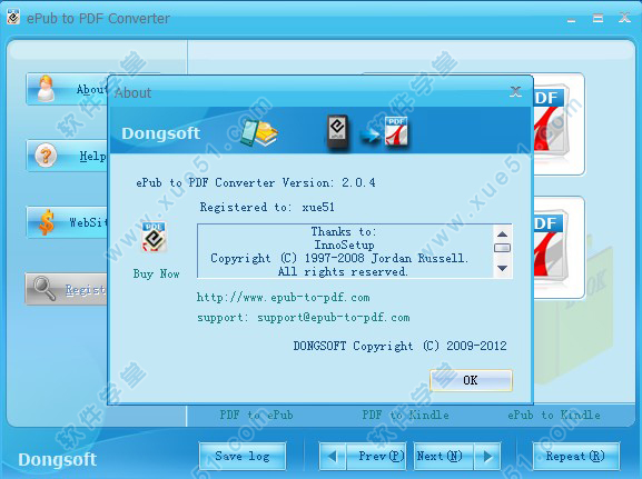 4、进入软件主界面,点击about,查看软件相关信息,epub转pdf软件(epub to pdf converter)破解版软件已成功注册激活,用户可以无限制免费使用了