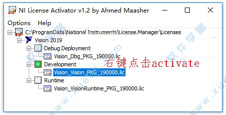 1、打开文件夹,进入Crack文件,运行破解补丁NI License Activator 1.2.exe程序,激活许可证即可,右键点击activate