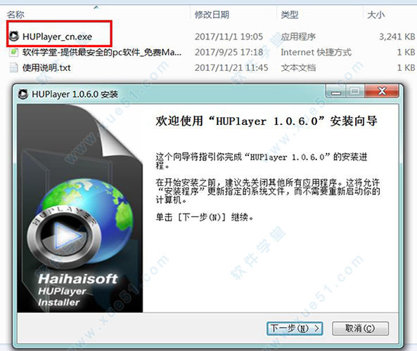 1、该软件的安装非常简单,首先运行解压文件中的huplayer_cn.exe启动安装程序