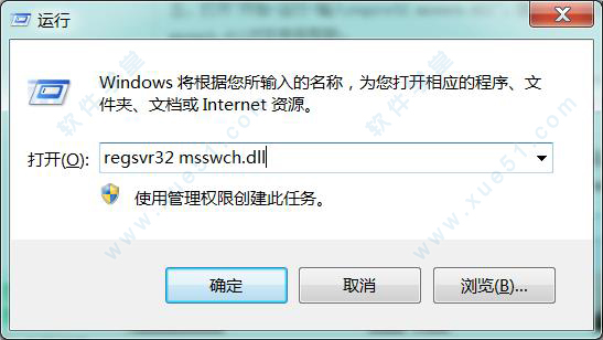 3、打开"开始-运行-输入regsvr32 msswch.dll",回车即可解决