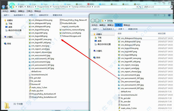 2、然后打开C:\ProgramData\TuneUp Software\TuneUp Utilities 2014\en-US文件夹,再将压缩包中“汉化包”文件夹中的所有内容复制进去,再启动软件就是中文了