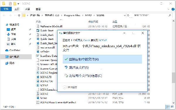 2、软件安装完成后将数据包中的破解补丁hasp_windows_x64_79264.dll文件复制安装目录下替换原文件即可,默认路径C:Program FilesFAROSCENE