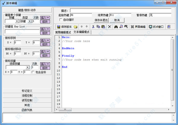 脚本大师可帮您快速的完成指定的任务,可以极大的减少您重复按键的工作量,甚至可以轻松实现全自动的任务!