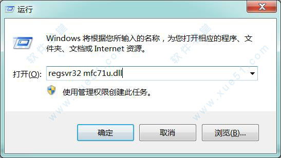 3、打开"开始-运行-输入regsvr32 mfc71u.dll",回车即可解决