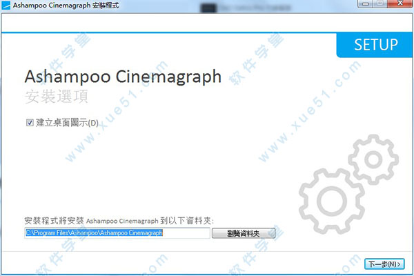 2、然后双击运行ashampoo_cinemagraph_1.0.2_sm.exe程序进行软件安装,弹出界面,安装语言选择繁体中文