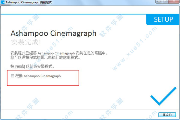 6、安装完成,去掉方框勾选,防止软件自动运行打开,然后点击完成退出安装程序