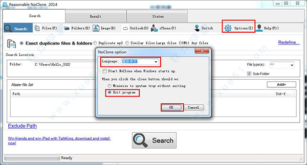 noclone是一款专门用来帮助用户快速在硬盘上搜索重复的文件的一个软件,可以相当于一个智能化的重复文件搜索工具。它也可以当做另类的垃圾清理来用,有时候我们会将一份文件下载重复了或者将重要出得文件进行备份,但是这样的文件多了,我们电脑的磁盘就会慢慢看被沾满,并且电脑会变得越来越卡。但有了它就可以将重复的文件查找出来,并且可以将这些文件进项大小、时间、内容的查看,同时也可以删除。它的使用操作也非常的简单,简单易上手,有需要的可以找来本站下载,小编还贴心的为大家准备好了Reasonable NoClone注册机,注册方法以及中文设置方法已经写在下文中了,只要根据下文进行操作即可。