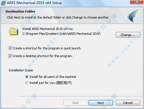 3、选择软件安装路径,可更改路径,也可按照默认设置安装路径即可,其他选项默认即可