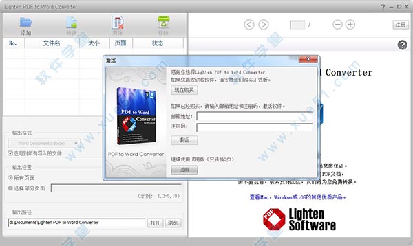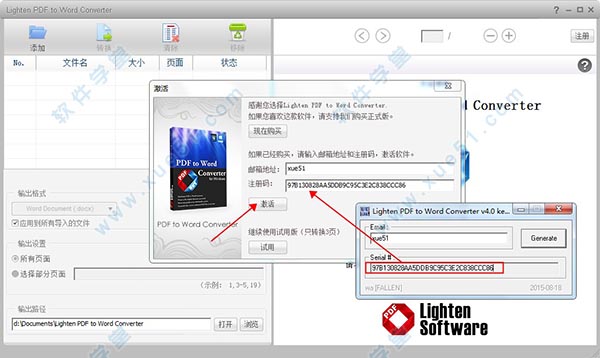 Lighten PDF to Word Converter中文破解版下载,数据包内附带注册机获取生成注册码,生成好的注册码可以完美激活授权软件,解锁软件中被限制的很多功能,用户就可以免费、无功能限制使用了,有需求的用户欢迎前来本站免费下载体验!