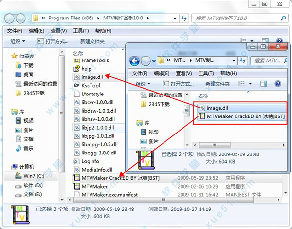 4、回到软件安装包,打开MTV制作圣手10 冰糖[BST]文件夹,将文件内image.dll和MTVMaker CrackED BY 冰糖[BST].exe这两个破解补丁文件复制到软件安装路径下,复制完毕即可激活软件