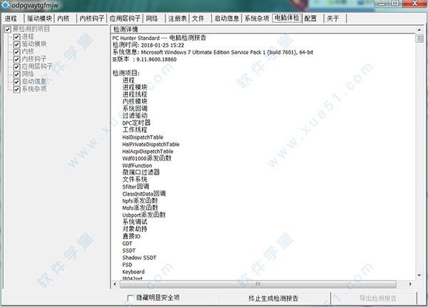 杀毒软件,这款软件非常有意思,它的杀毒过程可能不像一般的杀毒软件比如360安全卫士,金山毒霸,腾讯电脑管家等,这种杀毒软件的话,它们追求的是用户体验,整个病毒查杀过程非常的简单,只需要用户点一下然后等待就可以。而这款PCHunter的杀毒操作就不像一般的那种杀毒软件那么便捷,它的杀毒过程需要用户手动操作才能完成,可能这款软件使用的话比较麻烦,但是手动杀毒和自动杀毒各有各的优点也有缺点,虽然操作起来麻烦点,但是如果会使用的话,杀毒效果会优于自动杀毒软件。