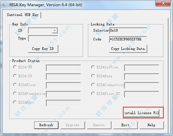6、接着,在该软件安装路径C:Program FilesRISARISA Key Manager下运行RISA Key Manager.exe文件,弹出界面,点击Install license file