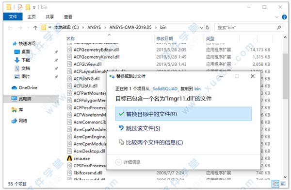 3、成功安装软件后,将_SolidSQUAD_破解文件lmgr11.dll复制到软件安装路径下