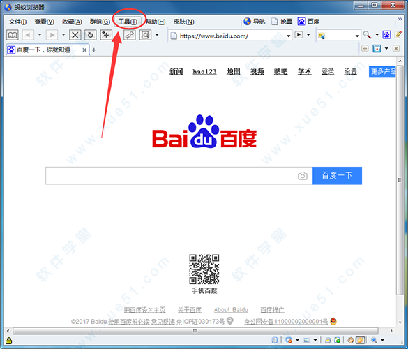 一、怎么设置主页?1、首先我们打开软件,然后在其顶部的菜单中找到“工具”;