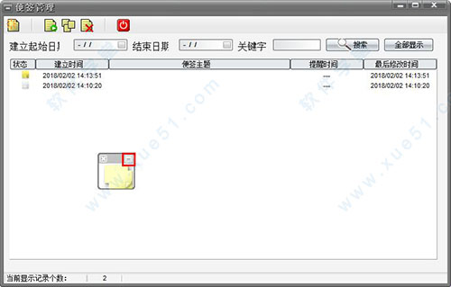 5、单击小窗口右上角能弹出便签管理的窗口,这里能看到便签的状态、建立日期、修改时间等一系列的信息;