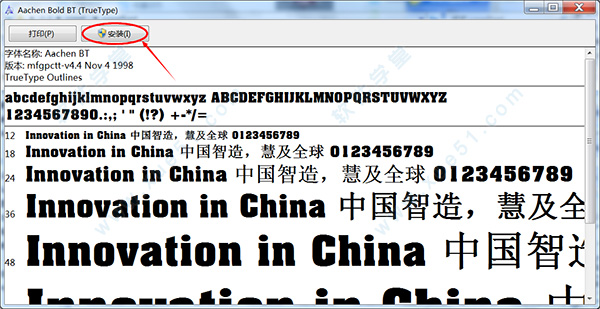 将压缩包解压以后,在文件目录下双击运行需要安装的ttf字体文件,在弹出的窗口中选择“安装”按钮进行字体的安装;