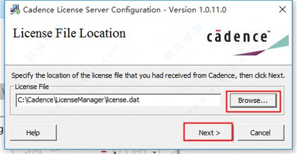 12、接着在C: Cadence LicenseManager 中打开LicenseServerConfiguration.exe,弹出界面选择License.dat