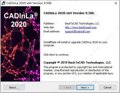 1、下载数据包然后解压,双击“install-CADInLa-2020-x64.msi”进行安装