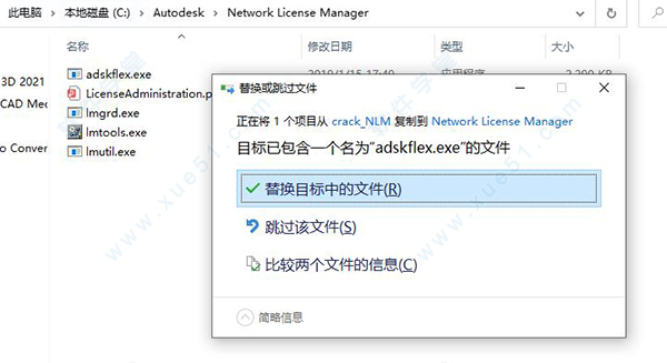 5、再将xf-adsk2020-netcrk-win文件夹下的“adskflex.exe”复制到软件许可证管理器目录下;