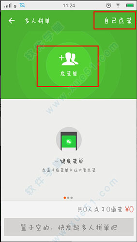 3、我们可以先点击“自己点菜”,然后点击“发菜单”